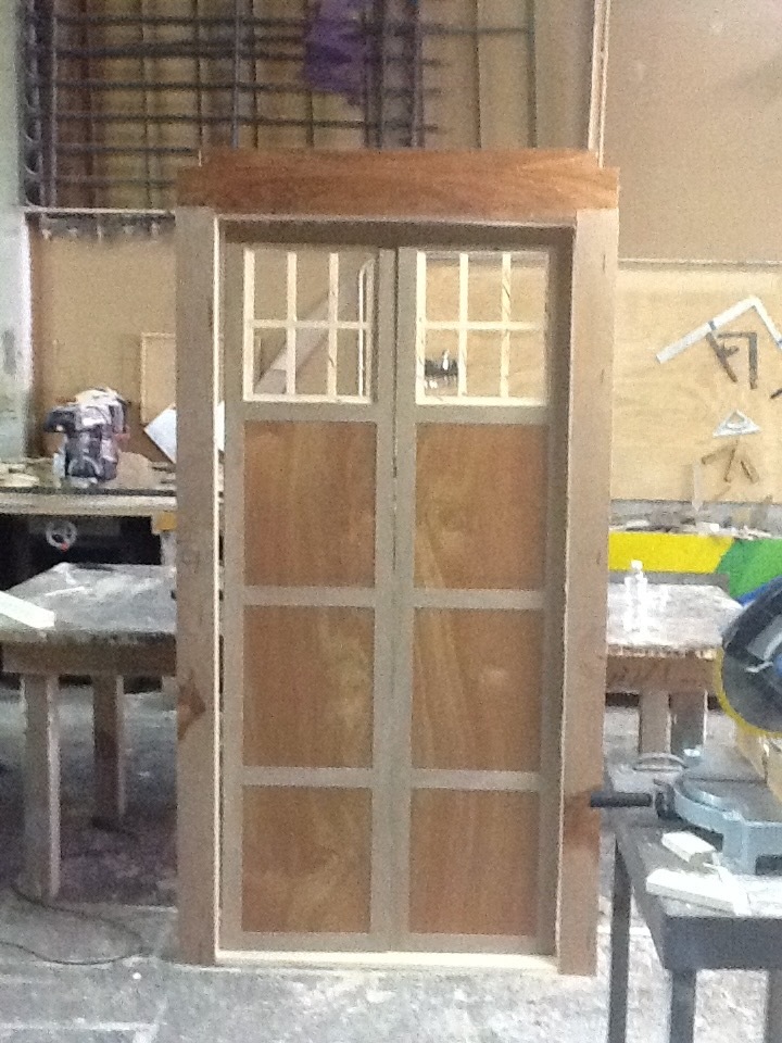TARDIS Prop Build Posted by ian on June 20, 2020 12:00 pm / 0 Comments Custom-built TARDIS prop for a Doctor Who themed production. Built from scratch in the shop — raw wood frame construction, then painted in the iconic TARDIS blue with “POLICE PUBLIC CALL BOX” signage and illuminated window panels. Related posts: July 4th Custom Bicycle Southernmost Point Buoy Replica Biplane for The Drowsy Chaperone Log Cabin Set: Weekend Comedy